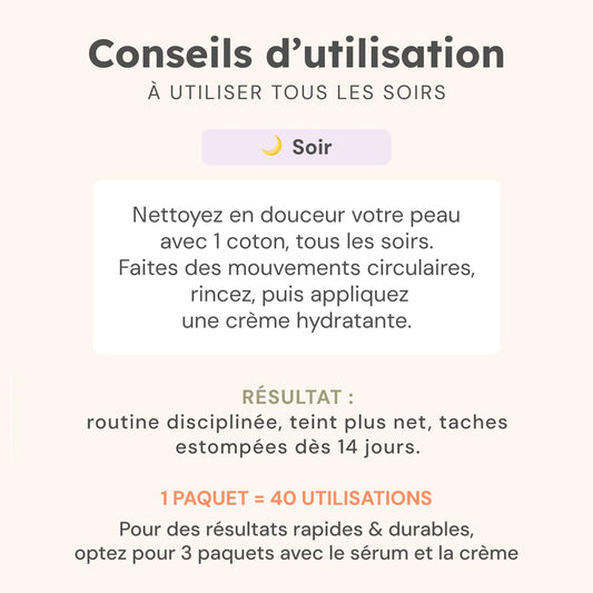 Je viens de recevoir ma commande, trois sachets de disques nettoyants et un sérium anti-imperfection, hâte de voir les potentiels résultats, ça fait des années que je cherche un moyen de me débarasser de mes tâches.